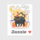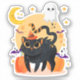 Cute black cat and ghost halloween button custom cut vinyl stickers! Featuring a cute halloween scene of a black cat in costume with a ghost, pumpkins moon and stars background! Great for cat lovers! More great items, cards, gifts, apparel and home decor with this design with this design are available in our shop!
