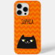 Funny, cute, kawaii black cat iPhone case with monogram - name and modern orange chevron pattern. Perfect gift for any cat lover!