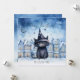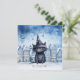 Send warm holiday wishes with this adorable Christmas card featuring a whimsical black cat in a starry wizard hat, set against a charming snowy village backdrop. The enchanting winter scene, paired with elegant script that reads "Merry Christmas!", makes this the perfect greeting for cat lovers and festive spirits alike.