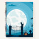 The Cute Black Cat Halloween Themed Notebook features a Black cat in a cemetery with a pumpkin. Perfect for journalling or a unique dairy for your personal use.