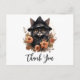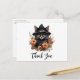 Thank you postcard with a cute illustration. A black long-haired cat wearing a black witch's hat. It's ears poking out. Surrounded by orange and brown autumn flowers. Awesome design for witch themed gifts and events and Halloween.