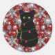 Cute black cat Meowy Christmas sparkling snowflake Classic Round Sticker