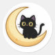 Cute Black Cat on Crescent Moon Sticker