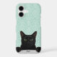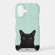 cute black cat peeking,funny kitty,pet animal lover,funny curious kitten peek,peaking animals say hello,girly pastel mint damask,girl who loves cats,green personalized customized initials,custom monogram name letters,blue personal initial letter