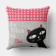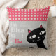 Cute Black Cat Pink Polka Dots Add Your Name Cushion