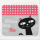 Cute Black Cat Pink Polka Dots Add Your Name Mouse Mat