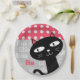 Cute Black Cat Pink Polka Dots Add Your Name Paper Plate