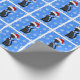This holiday Christmas wrapping paper features a cute black Siamese cat wearing a Santa hat with a blue and white snowflake background. Some graphics by artwork©delightful-doodles.com *