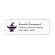 Address labels with a fun Halloween themed illustration for cat lovers. A big-eyed black cat wearing a large black witch's hat with a purplish pink belt around the brim.