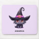 Cute Black Cat Wearing a Witch's Hat Mouse Mat