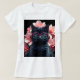 Cute black cat with glasses and headphones, against the background of flowers. ai generated