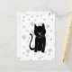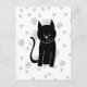 Black cat on a heart pattern background. This cute cat illustration in black and white, is surrounded by love hearts in light grey colours.
