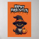Cute Black Cat With Pumpkin Jack O Lantern Poster