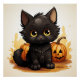 Cute Black Cat with Pumpkins Poster