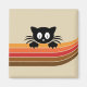 Abstract retro style illustration with yellow, orange, red and brown stripes and black cute cat decoration on beige background for every cat and retro lover. It is easy to customise it by adding your name/monogram etc.