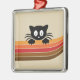 Cute black cat with retro stripes metal tree decoration