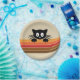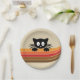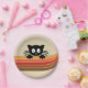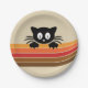 Cute black cat with retro stripes paper plate