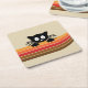 Cute black cat with retro stripes square paper coaster