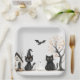 Serve up spooky fun with these Cute Black Cats Halloween Party Paper Plates! Featuring two adorable black cats in witch hats, playful ghosts, pumpkins, and a cheerful haunted house, these plates bring a whimsical Halloween vibe to your table. Perfect for kids’ parties, classroom celebrations, or casual fall gatherings, they combine festive charm with easy cleanup. Their non-scary design makes them ideal for children and cat lovers alike, creating a fun and friendly atmosphere for your Halloween feast. Pair them with matching napkins, cups, and invitations for a coordinated party look!