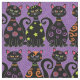 Cute Black Cats on Purple Halloween Pattern Fabric