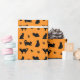 Cute Black Cats Paw Prints Orange Halloween Wrapping Paper