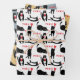 Cute black cats playing with hearts and meow wrapping paper sheet