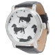 Black and white dachshund pattern. The white background colour can be changed to a colour of your choice.