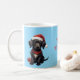 Cute Black Dog at Christmas with a Santa hat and scarf