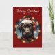 Cute Black Dog at Christmas with a Santa hat and scarf