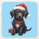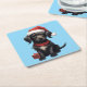Cute Black Dog at Christmas Square Paper Coaster