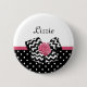 Cute Black Dots Pink Rose Chevron Bow and Name 6 Cm Round Badge