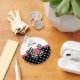 Bring out your girly personality with this cute black and white polka dot pattern keychain with a trendy black and white chevron bow and a chic pink ribbon rose. You can personalise this pink and black retro meets modern design by adding the name of your teen girl. Flat printed image, NOT actual rosette ribbon and bow.