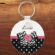 Cute Black Dots Pink Rose Chevron Bow and Name Key Ring