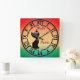 Cute black kitten cat gradient coral blue backgrou square wall clock