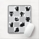A simple Mouse Pad in black and white combination with grey and white patterns in the form of a board where the pattern alternates with a cute black kitten on a striped background. An ideal choice of birthday, holiday gift for your loved ones who are also cat lovers.