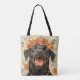 Cute Black Labrador Retriever Dog Orange Floral Tote Bag