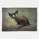 Cute big eyed black oriental cat sitting on a vintage blue damask fabric, a beautiful drawing and picture of a cat by Paul Stickland for StrangeStore. More funny black cat, good luck black cats, halloween cats and oriental shorthair cat gifts on StrangeStore on Zazzle. Love black cats! Great for your Halloween Party! The artist and childrens book illustrator, Paul Stickland is well known for his cute and humourous creatures and funny characters, all created from an original illustration or artwork.