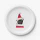 Cute Black Pug in Christmas Santa Hat Paper Plate