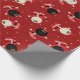 Cute Black Santa Party Pattern on Red Background Wrapping Paper