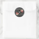 Cute Black Striped Modern Floral Gold Monogram Classic Round Sticker