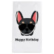 Cute black and tan colored French bulldog face illustration with space to add your own wording on the front and back. Background color can be changed.