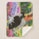 Cute Black White Cat in a Colourful Flowery Garden Sherpa Blanket