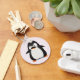 A cute black and white funny penguin with a funny black moustache. A cool retro design with a geek 80s funny black moustache on girly pink polka dots background. The perfect humour gift idea for her on any occasion.
