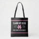 Help your grad celebrate her success with a unique and stylish graduation gift idea for her high school or college graduation.This pink, black and white, tote bag is personalised with graduation class year, name of school and student name. You can change the name to have only the monogram, the name and monogram, or just the name. The design looks sporty with pink stripes at the top and bottom with the words and graphics in the middle on both sides of the bag. The letters are in white and pink. There are two graduation caps on both sides. Design by Ms_Jade.
