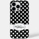 Cute Black White polka dots retro pattern Monogram Case-Mate iPhone Case. Personalise with your custom initial and name. Adorable Cool retro pattern with White dots and black background.