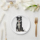 Cute Black White Puppy Dog Border Collie Party Paper Plate