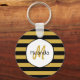 Cute Black Yellow Bee Stripes Name and Monogram Key Ring