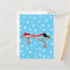 A cute blackbird and a cardinal on a snowy branch of a holly tree with two hanging red Christmas balls. They are wishing you a "Merry Christmas". On the background are snowflakes.