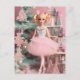 Cute Blonde Doll Pink Retro Christmas Postcard
