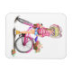 Cute Blonde Girl with Pink Bike and Cat in Flowers Magnet